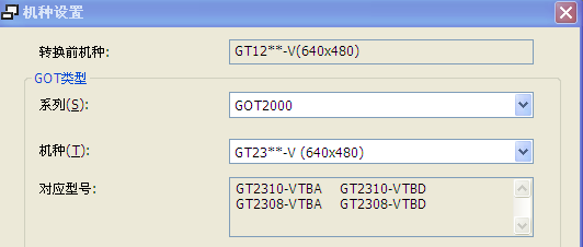 選“轉(zhuǎn)換為GOT2000數(shù)據(jù)或GS系列數(shù)據(jù)后....”,點確定,稍后會出現(xiàn)機(jī)種設(shè)置窗口: