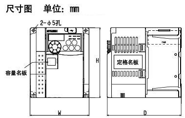 FR-D740輸入電壓為3相380V,功率:0.4K、0.75K、1.5K、2.2K、3.7K、5.5K、7.5K