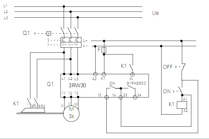 從樓主的圖上來看,旁路是在內(nèi)部實(shí)現(xiàn)。即內(nèi)部含旁路接觸器。邊上的K1是不是抱閘接觸器?