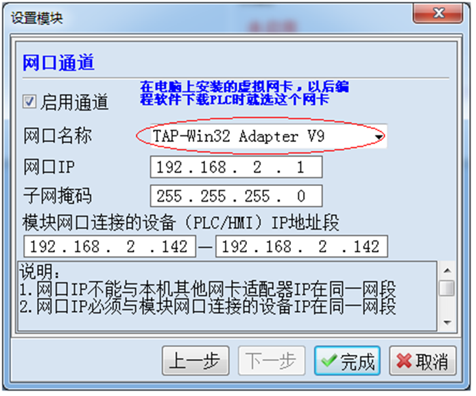 網(wǎng)口IP:該IP只要求和你遠(yuǎn)程PLC 的IP一個(gè)網(wǎng)段,并且和其同網(wǎng)段的設(shè)備不沖突即可。如上圖,和網(wǎng)口連接的遠(yuǎn)程PLC地址為192.168.2.142,網(wǎng)口IP隨便設(shè)置為該網(wǎng)段的一個(gè)IP,和這些PLC不沖突即可。