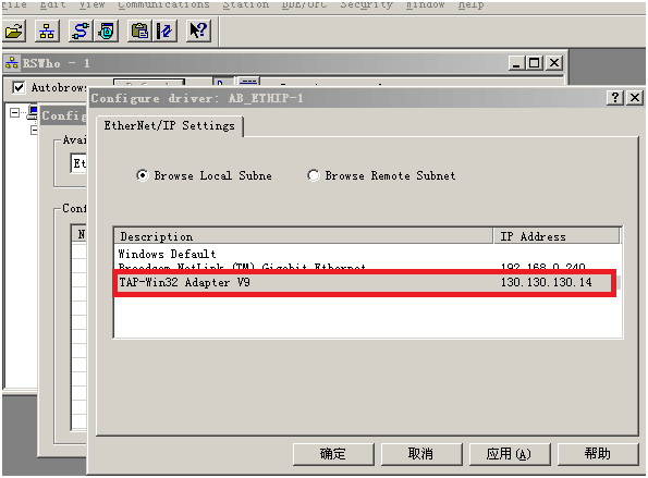3、遠(yuǎn)程調(diào)試和下載程序的時(shí)候,只需要在AB的編程軟件中調(diào)用虛擬網(wǎng)卡即可,中間的遠(yuǎn)程連接均有軟件自動(dòng)完成,只要保證遠(yuǎn)端硬件聯(lián)網(wǎng),還有PLC的IP地址正確,所有操作和現(xiàn)場(chǎng)操作一樣;