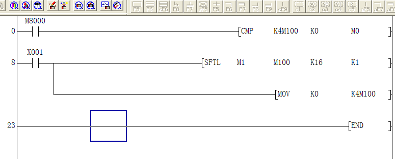 你上邊的程序本身就有毛病, MOV  K0  K4M100  這條執(zhí)行的時(shí)候,整個(gè)程序就沒(méi)有比較可言了。