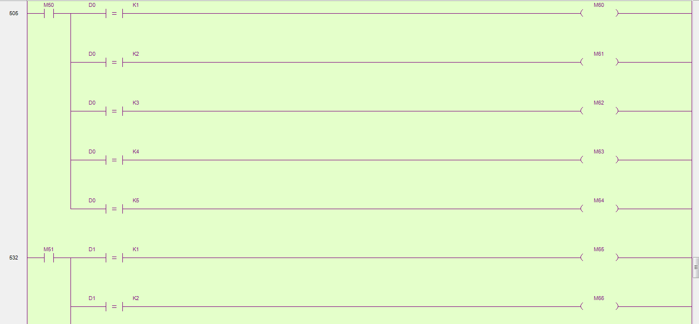 3.就算多個沒料信號同時出現(xiàn),因程序是掃描執(zhí)行的,程序先掃到先跳到加料程序,也不會出錯。
