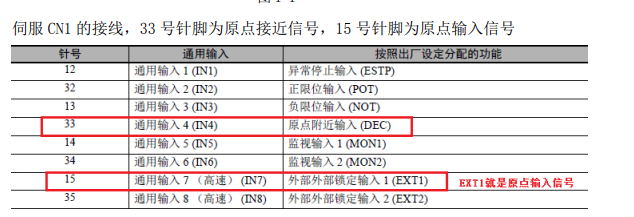 實在是CP的用習慣了,轉(zhuǎn)不過彎來,總以為原點和原點接近信號是要接在PLC的固定IN點上,實際上是接在伺服驅(qū)動器CH端口的通用輸入上,以后還是得多留點心。。。