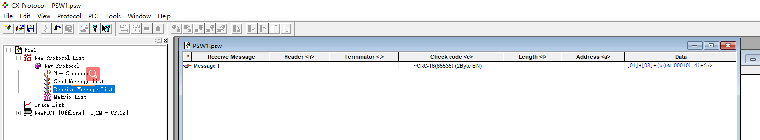2、Message1改為  01+ 03+ 04+ (w(DM 10),4)+CRC