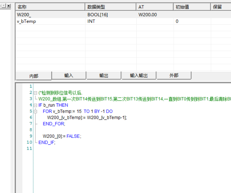 ST數組也簡單,無非把16個BOOL移位一次就行,