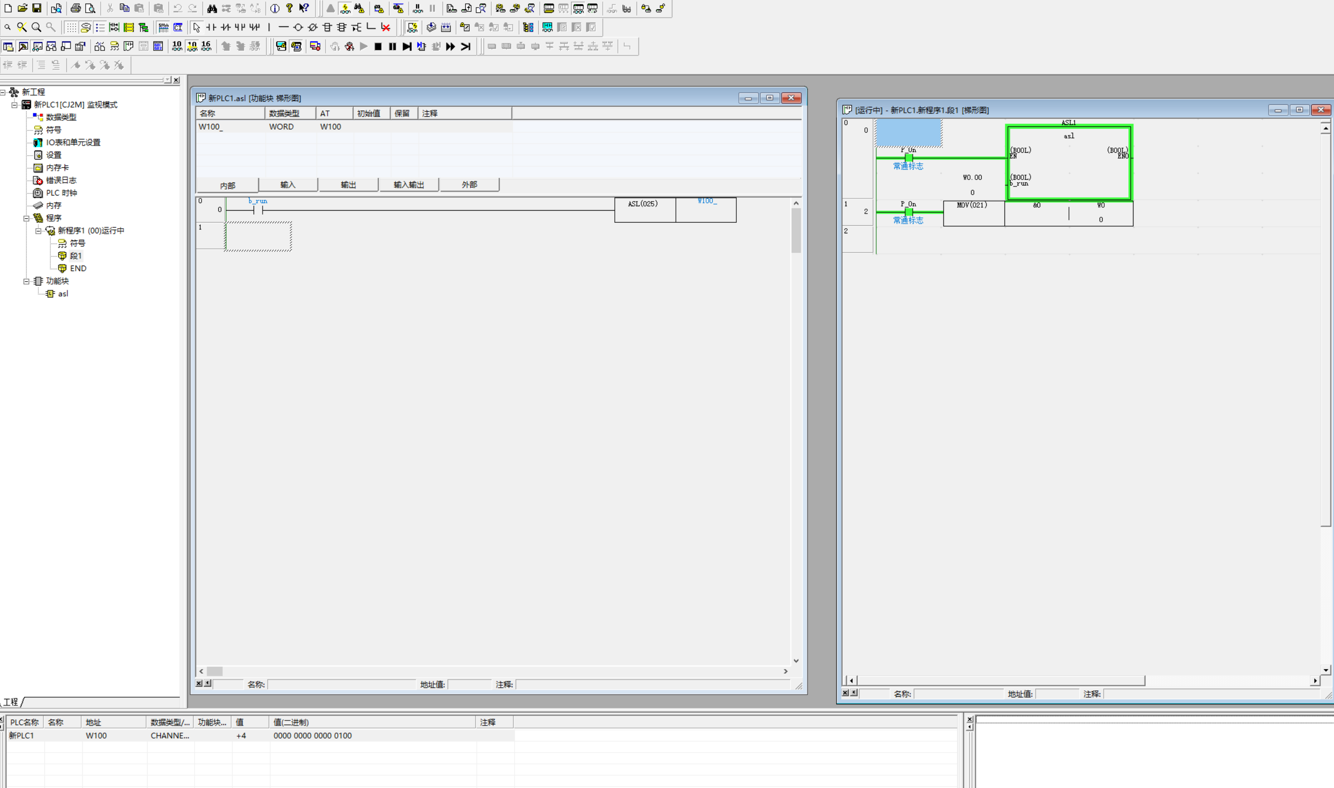 梯形圖直接定義一個內部變量(16位估計都行,我定義的WORD),AT W100