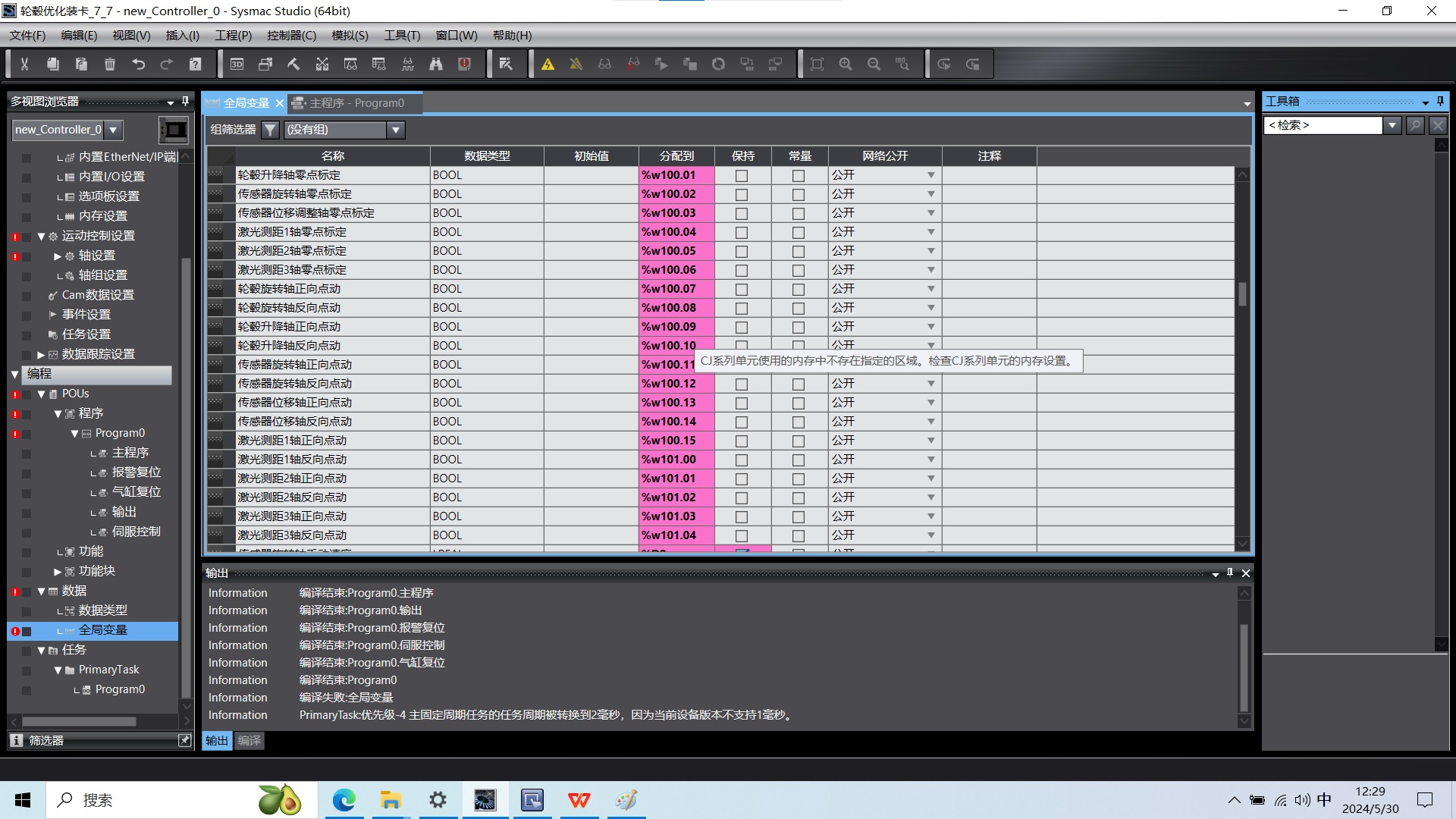 更改設備NX1P21040DT后程序,分配內存全部紫紅色