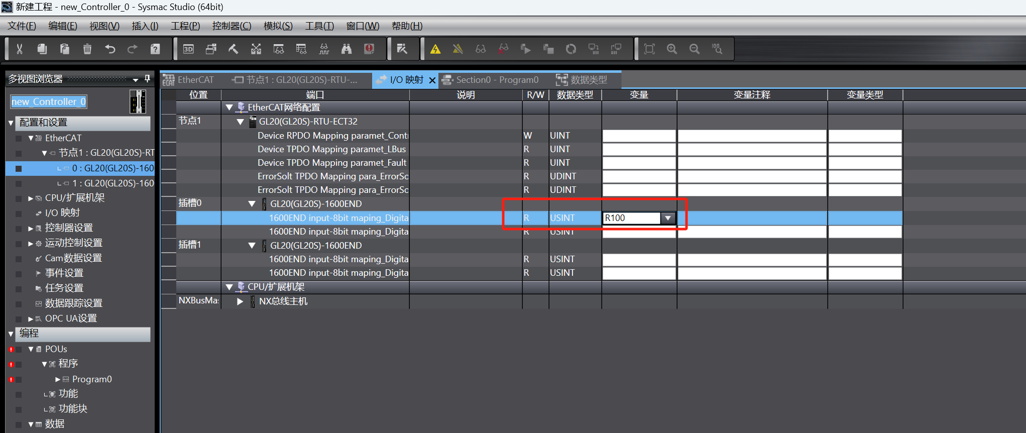 在GL20--ECAT里面配置上模塊,模塊右邊有個(gè)PDO映射,編輯一下就好了