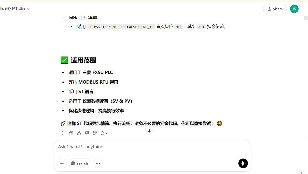 大家好!今天我們將深入探討如何使用三菱FX5UC PLC與亞泰儀表實現MODBUS通訊。通過梯形圖、ST語言以及Chatgpt編寫ST程序,我們將展示不同編程方式如何在相同的通訊任務中帶來不同的效果,助你選擇最適合你項目的編程方式。三種不同的程序,都已經上機測試過,歡迎大家探索交流,謝謝大家!