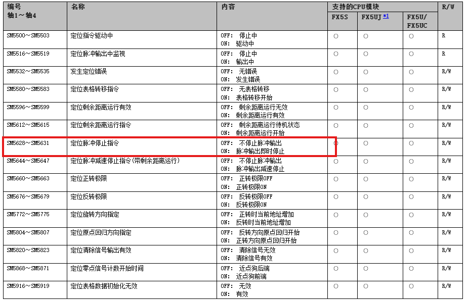 - 在FX5U中,DDRVA指令控制伺服運行,可以通過修改控制字(如強制停止位)來中斷運行。