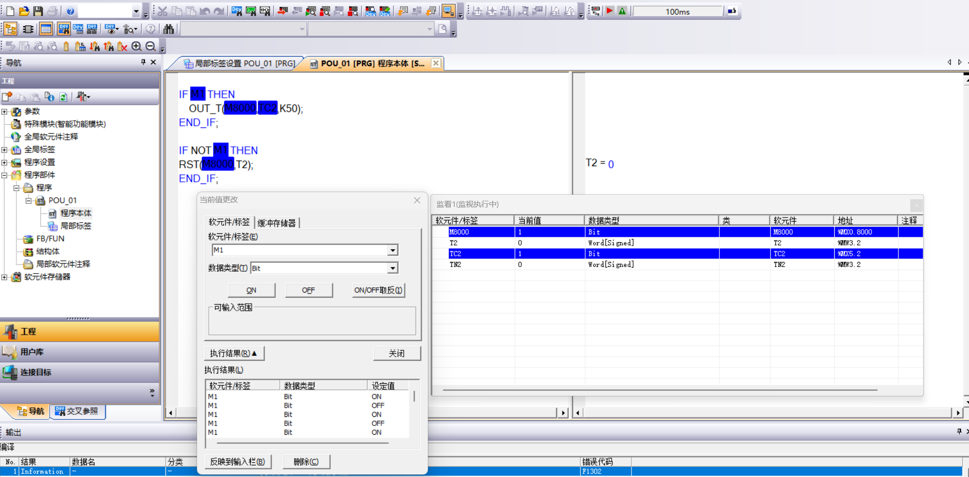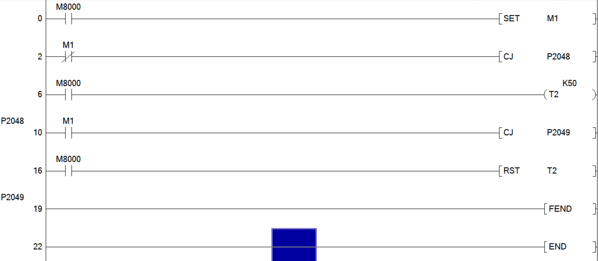 在程序前直接觸發M1,可以計時,所以結論就是圖3所說的,一開始的M1沒有ON導致RST T2導通,T2進入復位狀態,CJ跳過并不能使其跳出復位狀態,解答完畢