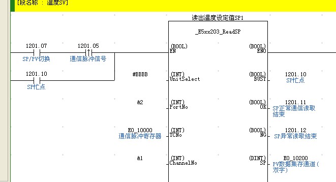 很簡單的,插入庫文件,找到溫度控制器,用E5CN的就行,然后選是讀啥參數還是寫啥參數。鼠標放在梯形圖功能塊上點右鍵參考,可以釣出該塊的PDF說明,實在不懂還有個辦法,400 820 4535 那里的小妹妹很溫柔的,還要你留電話號碼呢。