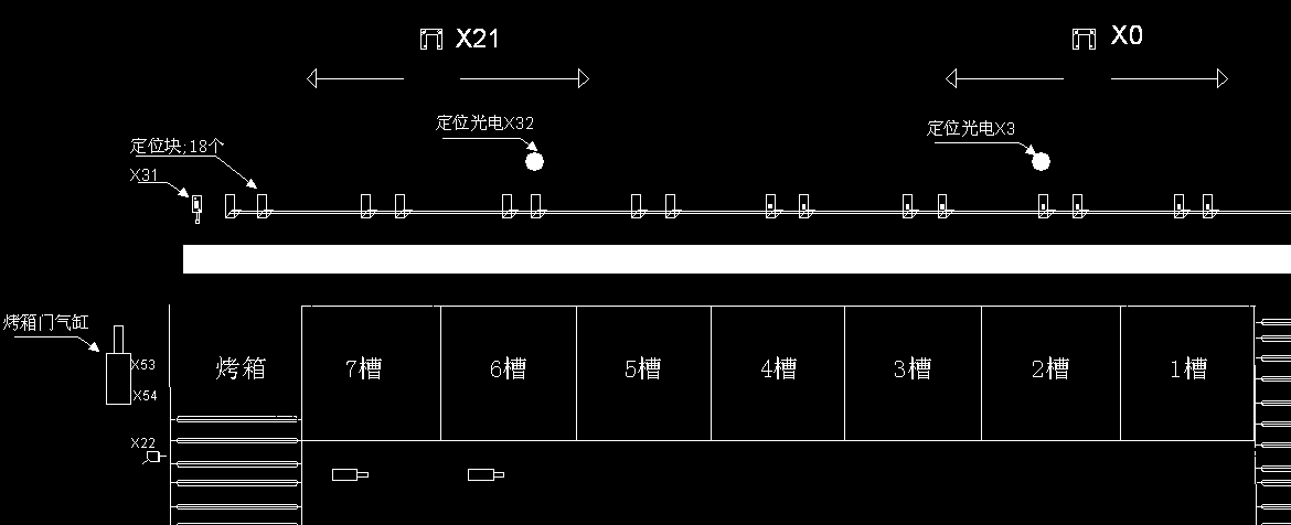 8槽,2個機械手,每個機械手裝一個U型開關(X0 X21),移動時檢測定位塊來定位。可以工作,但感覺對操作者的熟練程度要求較高,想重新用編碼器,但擔心堵轉或跳齒。不知各位有什么好方法